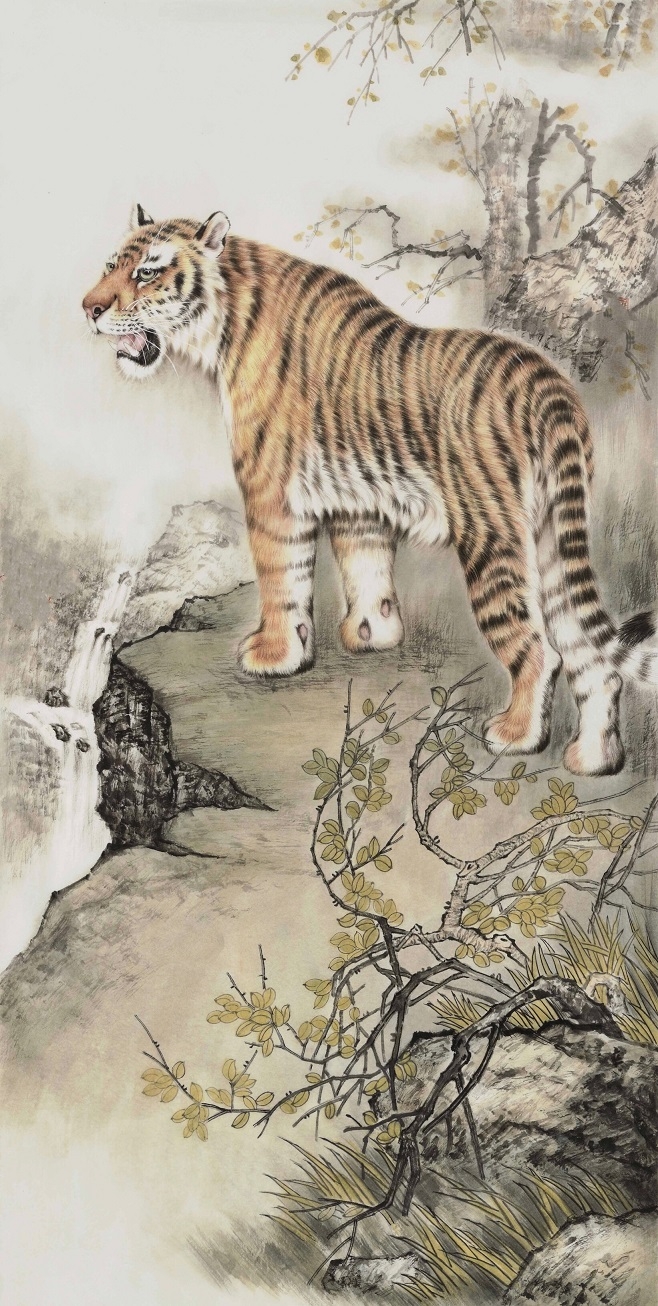 画家陶润文有杰出的美术才华,凡属美术多科诸目,他都广泛涉足,传统水墨、藏传唐卡、陶瓷、书法、美术理论、国礼创作等等,都各有精湛的创作成果。正是因为有着博涉多优的创作能力,所以他在美术界、文化界、艺术交流界的影响力与日俱增。收藏、品鉴其艺术造诣的称赞涌涌不绝,溢乎箱箧,动盈卷轴。面对这样一位美术雄才、文化专家,很难以千言而嗟叹充足,所以以下仅从他创作的充满敦煌壁画文化质感的作品,来体验他美术功夫的炉火纯青。